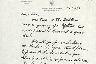 When my incomparable wife, Sara, and I were in the special collections at UNR, delving into the vast Reid archive, she would often stop me as I…